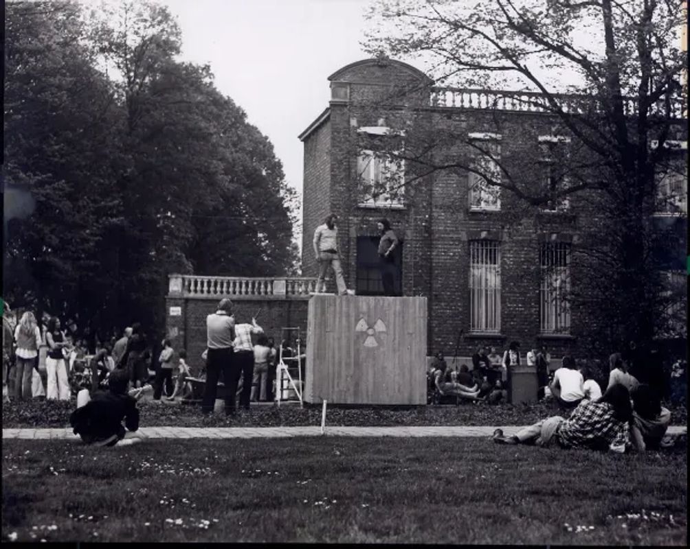 Absoluut, het ‘Radioactief Monument’, een kubus uit 1976, wordt het centrale beeld van de expo, en is eigenlijk niet eens van vader. Het is een werk gemaakt door het kunstenaarscollectief Mass & Individual Moving uit Brussel dat aandacht wilde vragen voor de gevaren van hoogradioactief afval dat geproduceerd wordt in de kerncentrales. Symbolisch maakte het dan kubussen waar een minuscuul radioactief element in zat. De kunstenaars vroegen aan schrijvers om een brief te maken die kon worden gelezen wanneer de radioactiviteit was uitgewerkt. In dit geval was dat honderd jaar. In '76 schreef vader dus een brief. Aan wie hij schreef of wat erin staat, weten we niet. We kunnen hem namelijk niet lezen. Ik heb hem die zien verbranden in de tuin toen ik elf jaar was. Dat is me mijn hele leven bijgebleven; wat heeft hij in die brief geschreven? Ik kan me er wel van alles bij voorstellen, want ik ken vader, maar we zullen het nooit te weten komen. Dat staat ook een beetje symbool voor hoe je als zoon nooit je vader of ouders kunt leren kennen. Er zullen altijd geheimen blijven. Het leuke is dat dat monument voor de Warande stond, als politiek statement van de stad tegen de opbouw van kerncentrales. Daarna heeft de stad die kubus verplaatst. Tot onze grote ontroering heeft ze nu besloten om die kubus opnieuw op een zichtbare plek in de stad te plaatsen. Voor de tentoonstelling wordt de kubus naar de Warande verplaatst. Dat wordt een plechtig en symbolisch moment.
