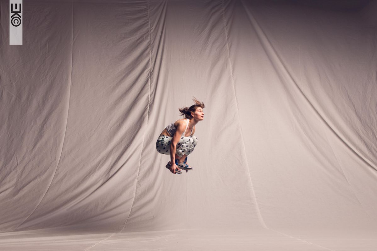 Ik ben opgeleid als partneracrobaat en grond-/dansacrobaat. Voor onze nieuwe voorstelling leerde ik ook Icarian games (discipline waarbij de ene acrobaat sprongen en salto's maakt op de voeten van de andere, n.v.d.r.) en acrobatische fietstechnieken. Daarnaast werk ik vaak vanuit de traditie van clowning.