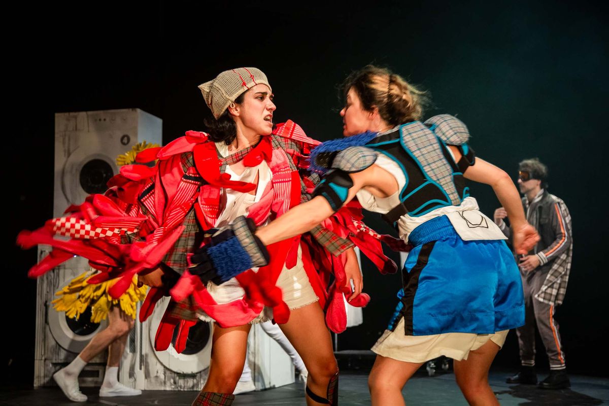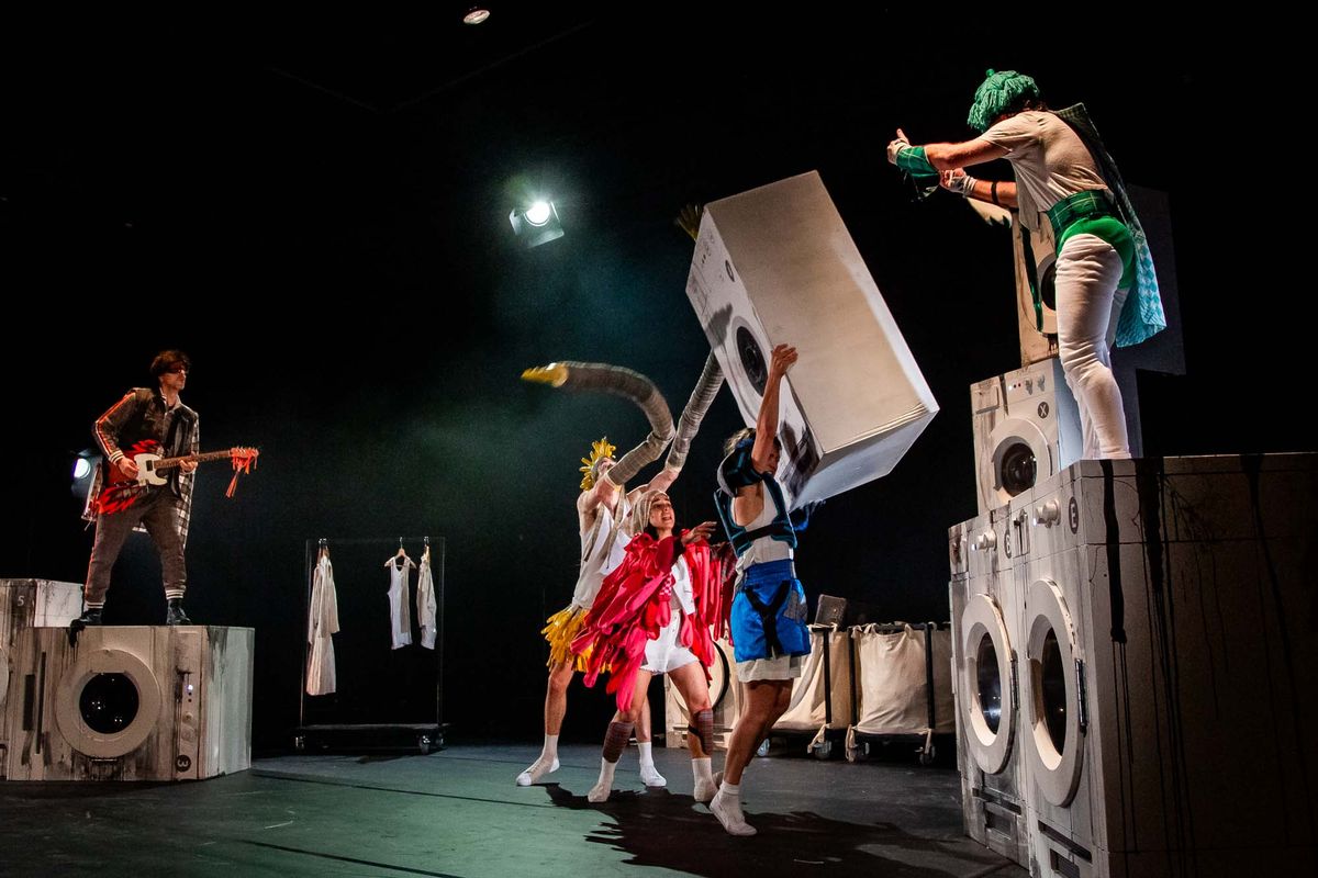 Een heerlijk zotte voorstelling over superhelden die uit wasmachines rollen.