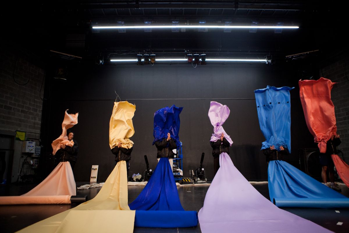 Een groep performers gaat aan de slag met 6500 meter zijden stof. De lappen stof verdwijnen en verschijnen weer onder begeleiding van muziek uit DEEWEE en worden zo echo’s die de ruimte nieuw leven inblazen.