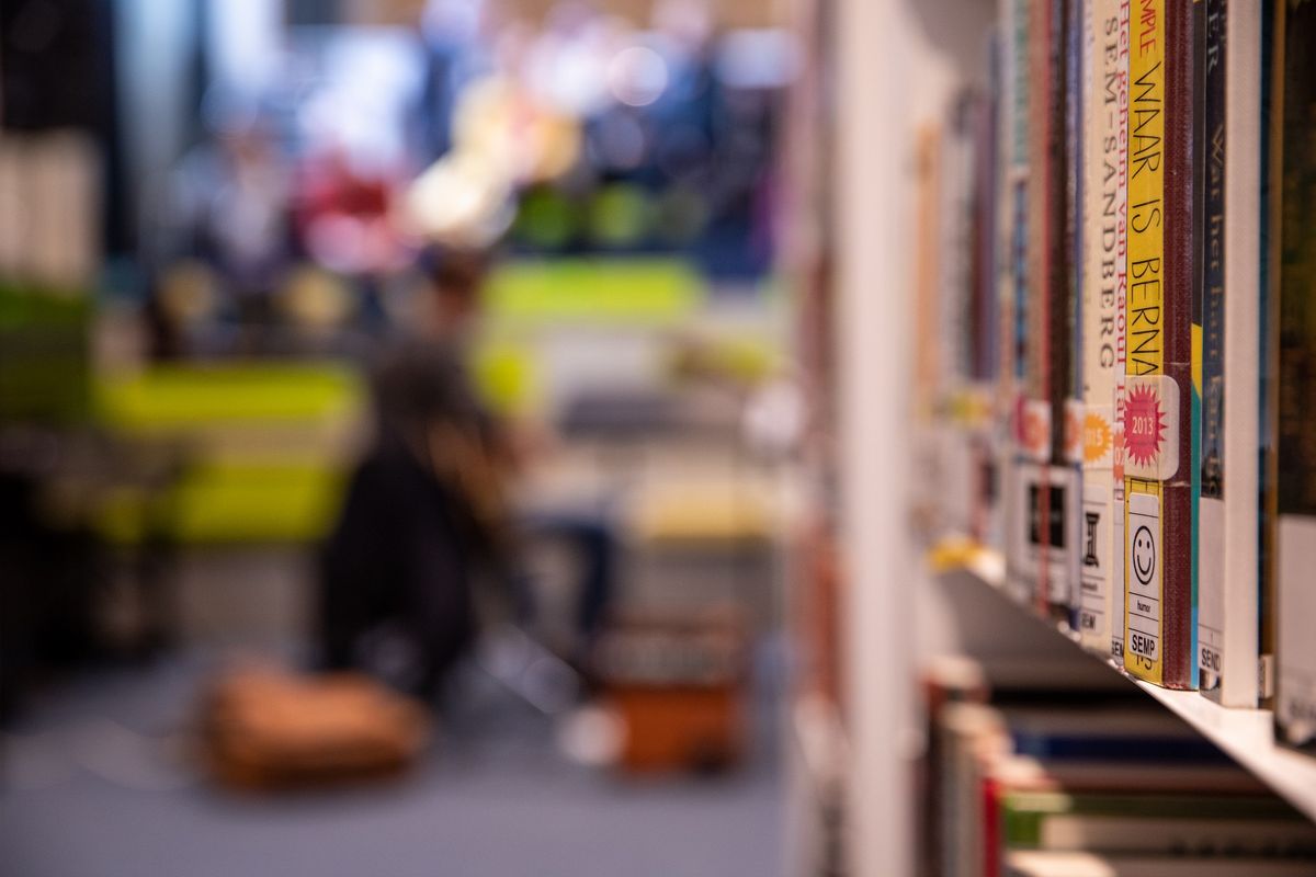 Op verschillende woensdagen en zaterdagen van het schooljaar worden de muzikanten en woordkunstenaars van de academie met open armen ontvangen aan de “Podiumtrap” van de bibliotheek.