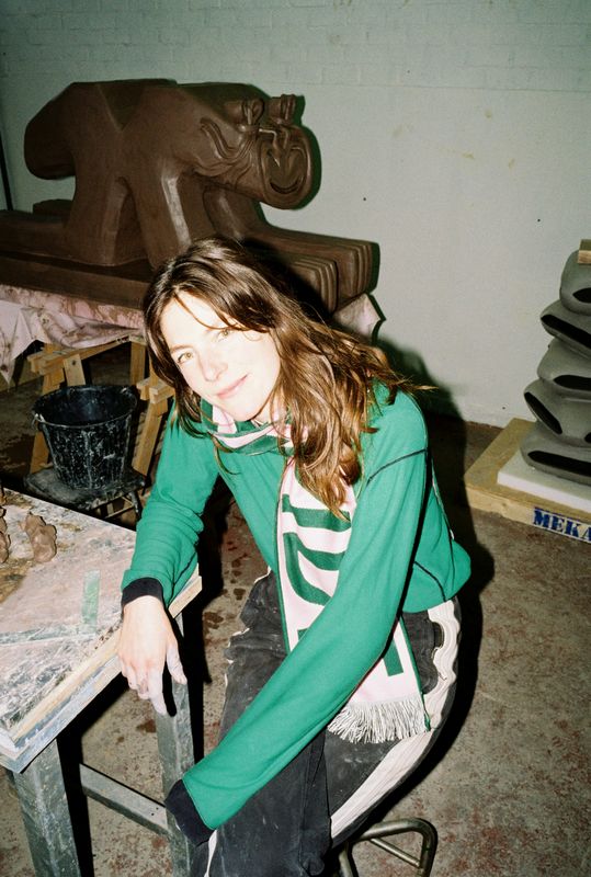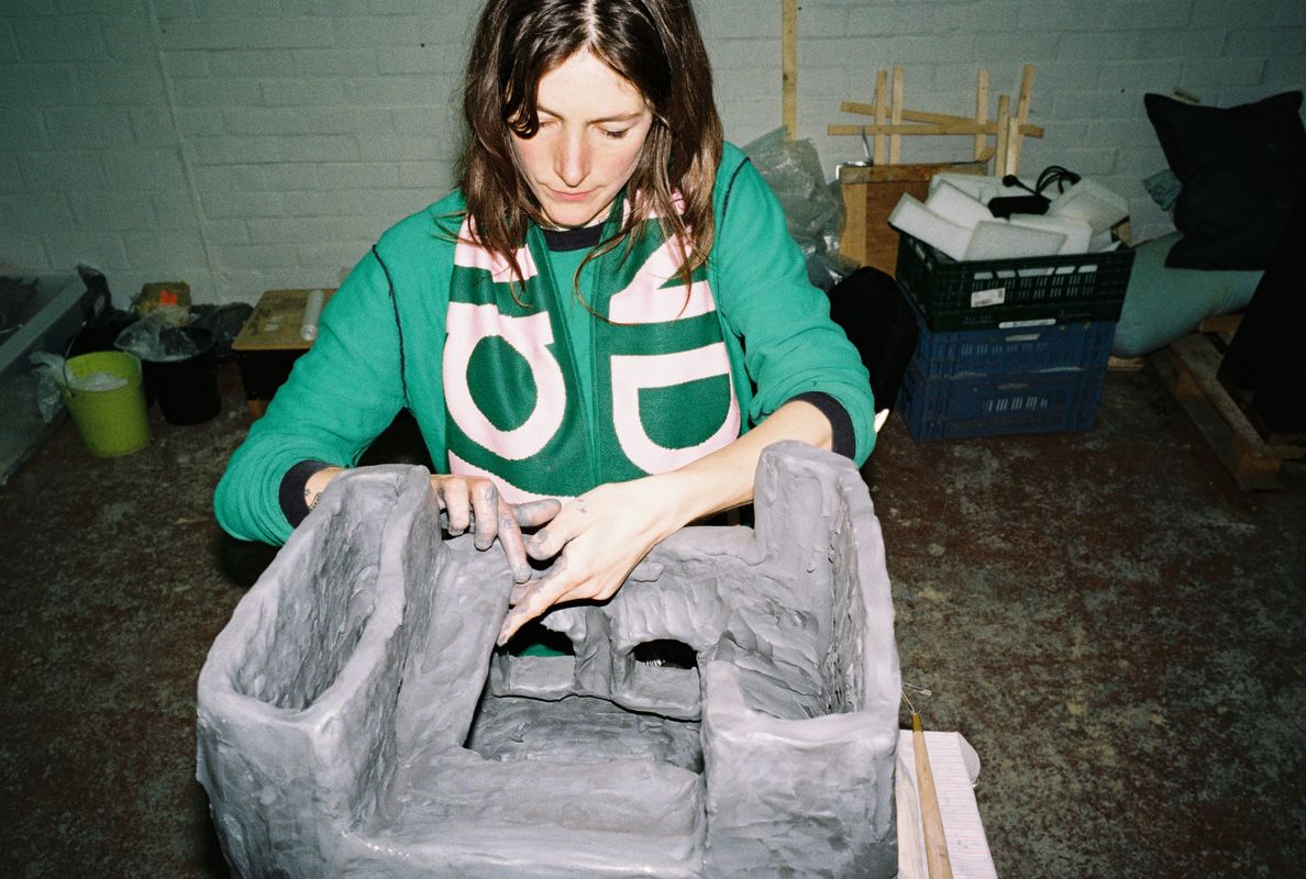 Wanneer we Sharon Van Overmeiren ontmoeten in haar studio in Antwerpen, treffen we diverse beelden aan in verschillende staat van afwerking. Haar atelier ademt inspiratie: fragmenten van vroegere werken, gloednieuwe sculpturen waar ze de laatste hand aan legt, fotokopieën aan de muur, moodboards en stapels boeken over archeologie en kunstgeschiedenis. Voor wie haar werk kent, verrast deze veelheid aan cultuurhistorische elementen niet. De kunstenares herwerkt als geen ander decoratieve elementen uit uiteenlopende tijdperken en culturen, die moeiteloos samenkomen in haar sculpturen. Middeleeuwse juwelen, Azteekse elementen, Indonesische ornamenten, maar ook hedendaagse animatiefiguren en logo’s van bekende merken krijgen een plek in haar werk.