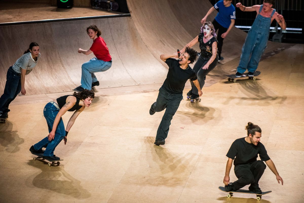 In de Schouwburg zorgden skaters en dansers voor een bijzonder bezwerende en intense performance. In ‘SKATEPARK’ van Mette Ingvartsen deden – naast internationale spelers – trouwens ook Turnhoutse skaters mee. De trashy livemuziek maakte het stuk helemaal af.